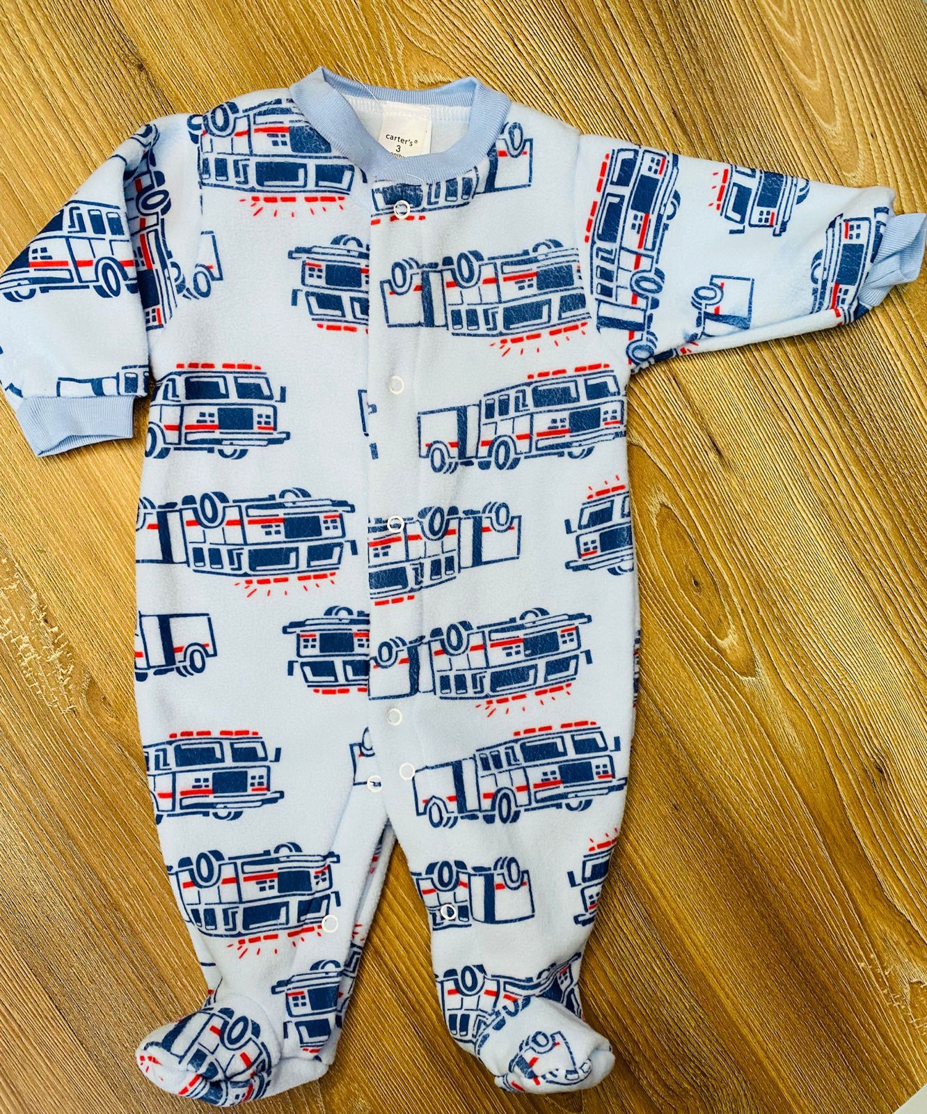 ✨ Esta pijama enteriza de tela suave y abrigadora con estampado de carros de bomberos es perfecta para mantener a tu bebé cómodo toda la noche. ¡Máxima calidez y mucha diversión para soñar! 💙