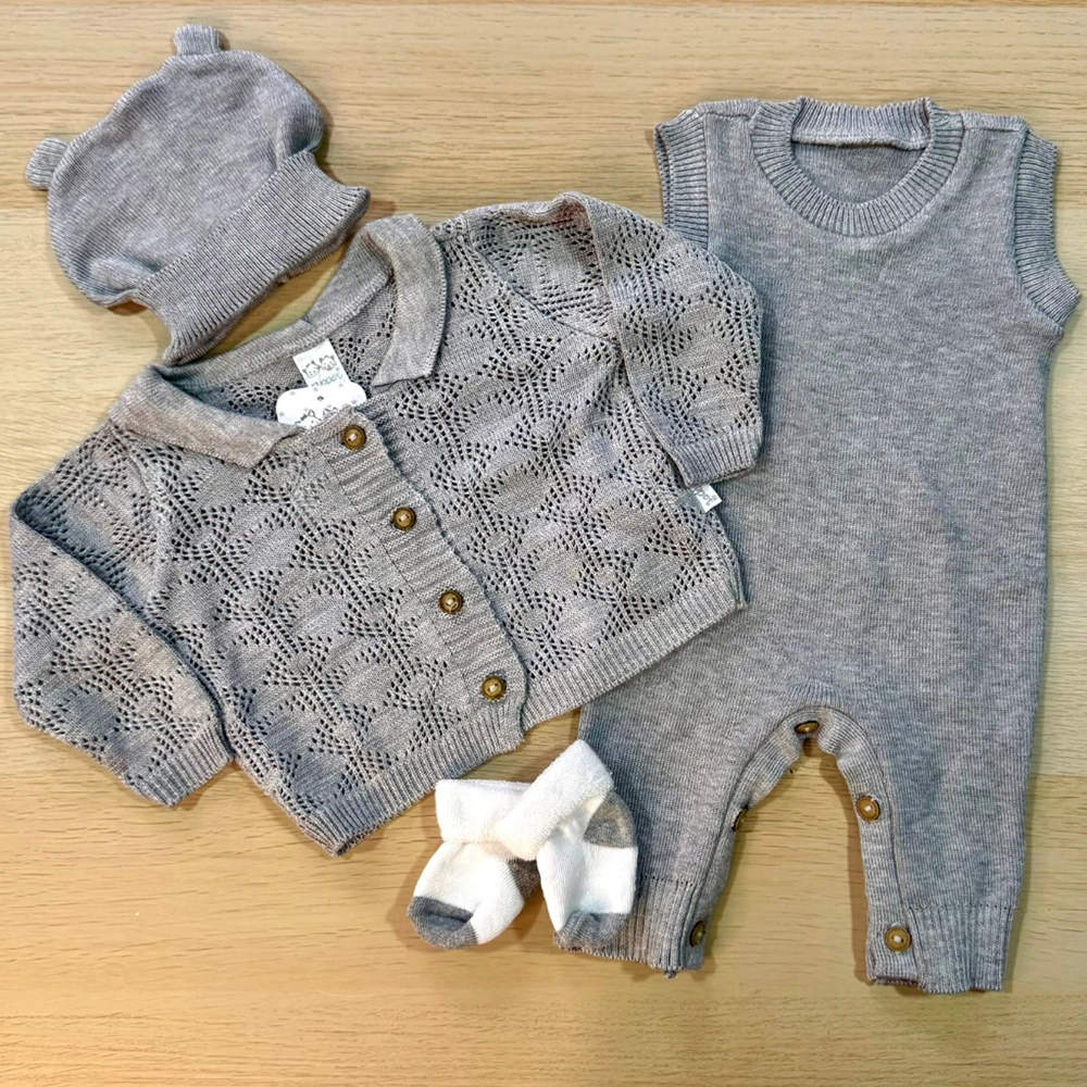 Un set clásico y delicado que combina estilo y comodidad para tu bebé. Elaborado en tejido suave y transpirable, ideal para mantenerlo abrigado con un look encantador.