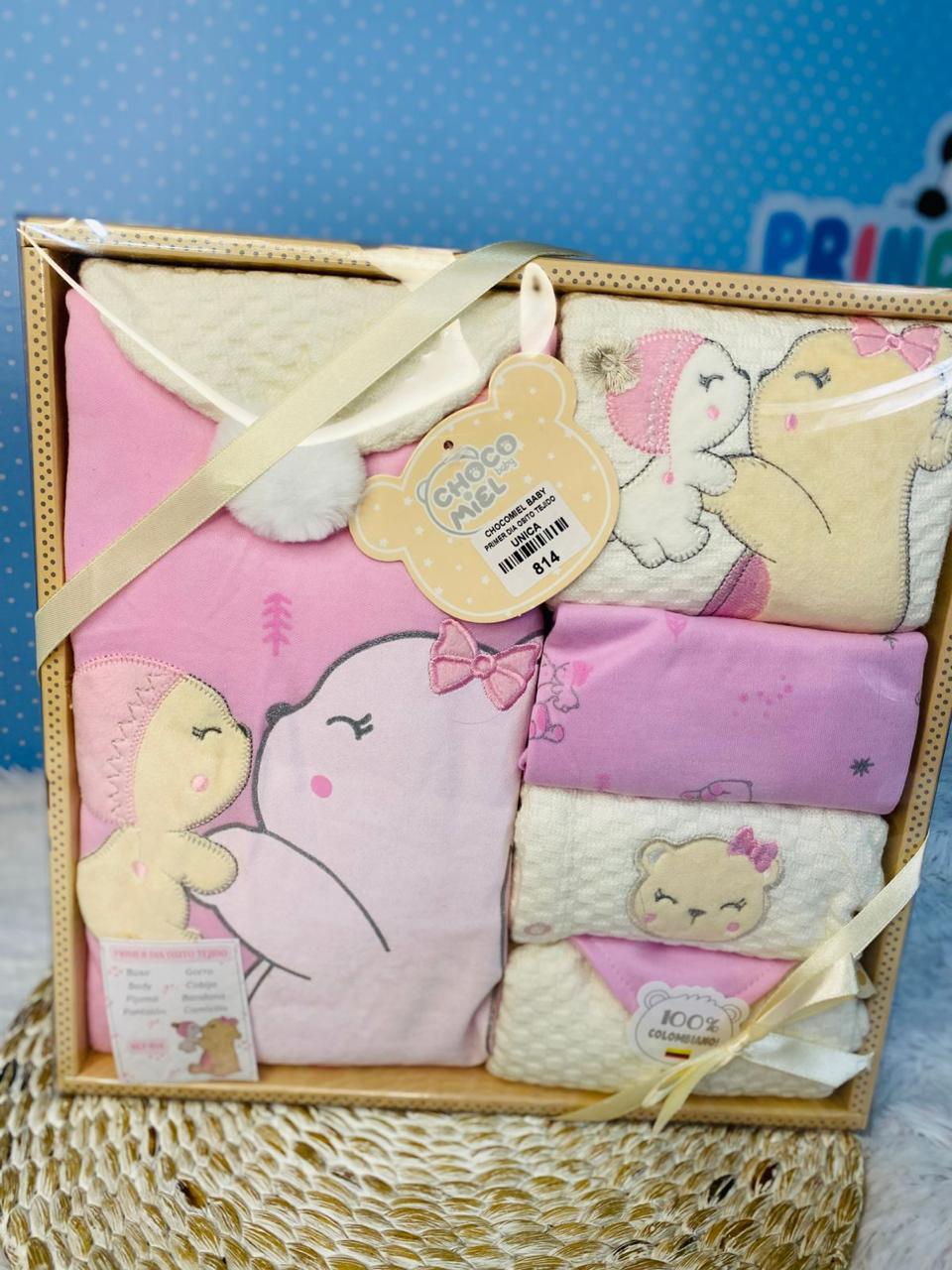 Un encantador set de bienvenida en hermosos tonos rosas y cremas, con diseños de ositas tiernas y mariposas delicadas. 🦋 Incluye prendas súper suaves y acogedoras, perfectas para los primeros días de tu princesa. ¡Confeccionado con amor y 100% colombiano! ✨