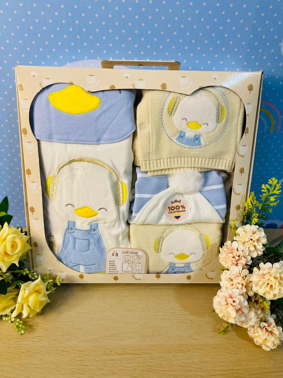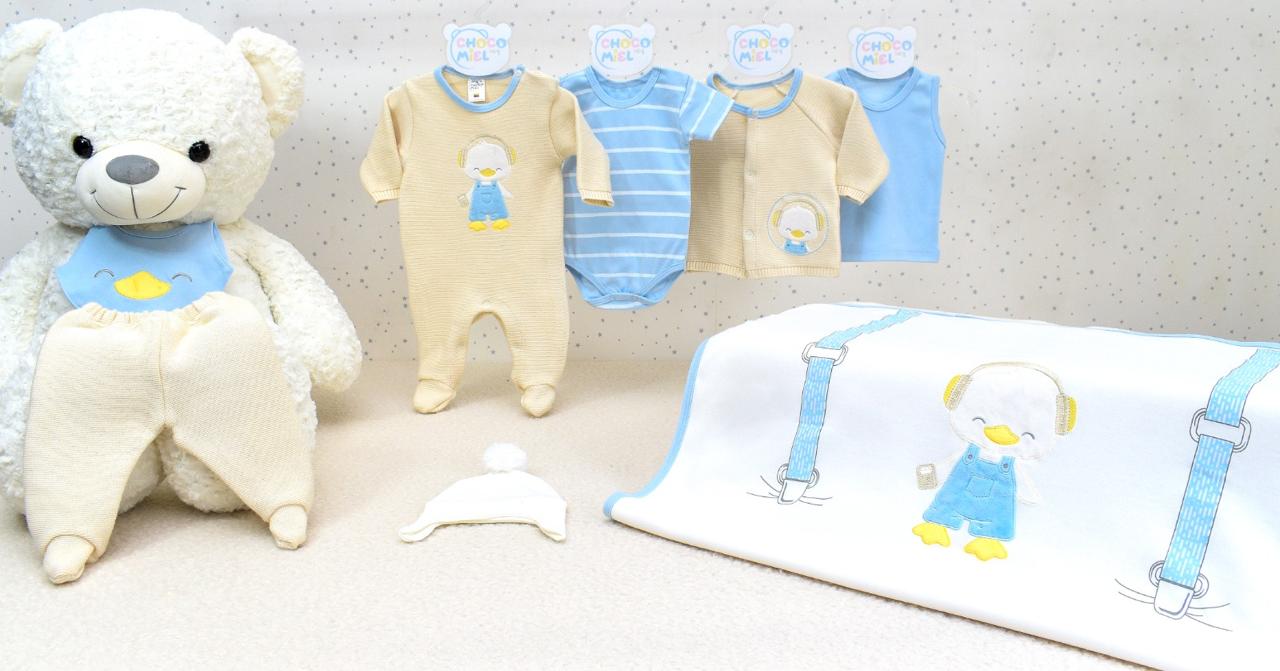 ✨ Set de primera muda en tonos beige y celeste con temática patito, ideal para ofrecer confort y suavidad desde el primer día. Elaborado con materiales delicados y diseños adorables que aportan calidez y ternura. Contiene body manga corta, esqueleto, gorrito, pijama, pantalón, buso, cobija y babero. 🐣🩵🌤️